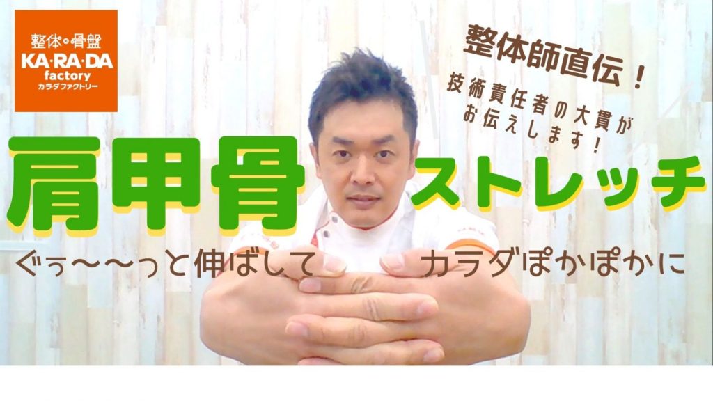 ① 坐姿側屈伸展(肩胛骨周りをほぐす)